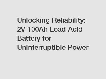 Unlocking Reliability: 2V 100Ah Lead Acid Battery for Uninterruptible Power